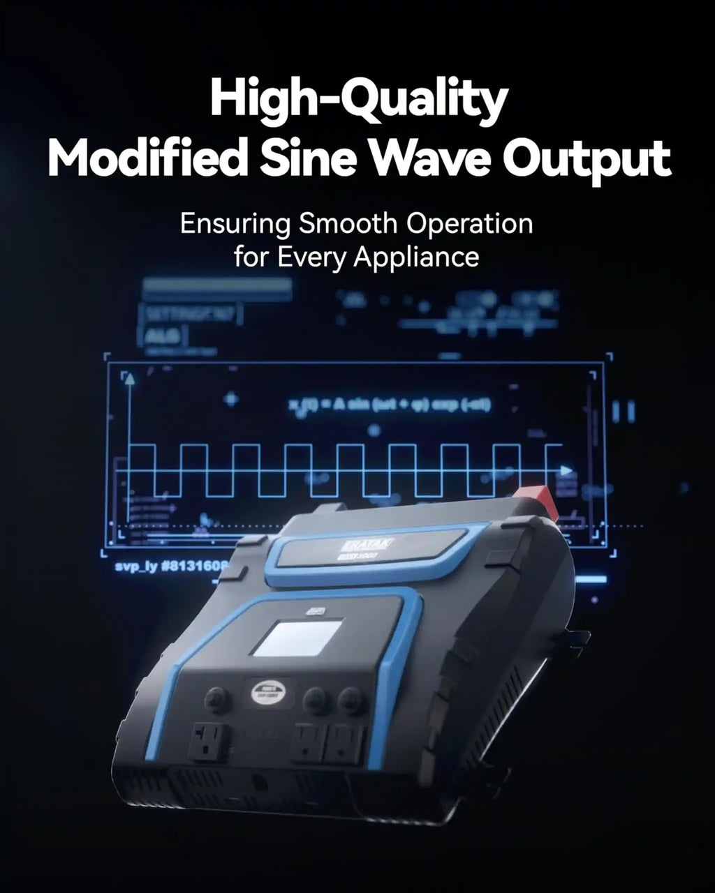 Smart LCD Display & Remote Control – A large LCD screen shows battery voltage, output wattage, and fault codes in real time. The included wired remote switch allows safe, convenient control from inside your RV, truck, or control room.